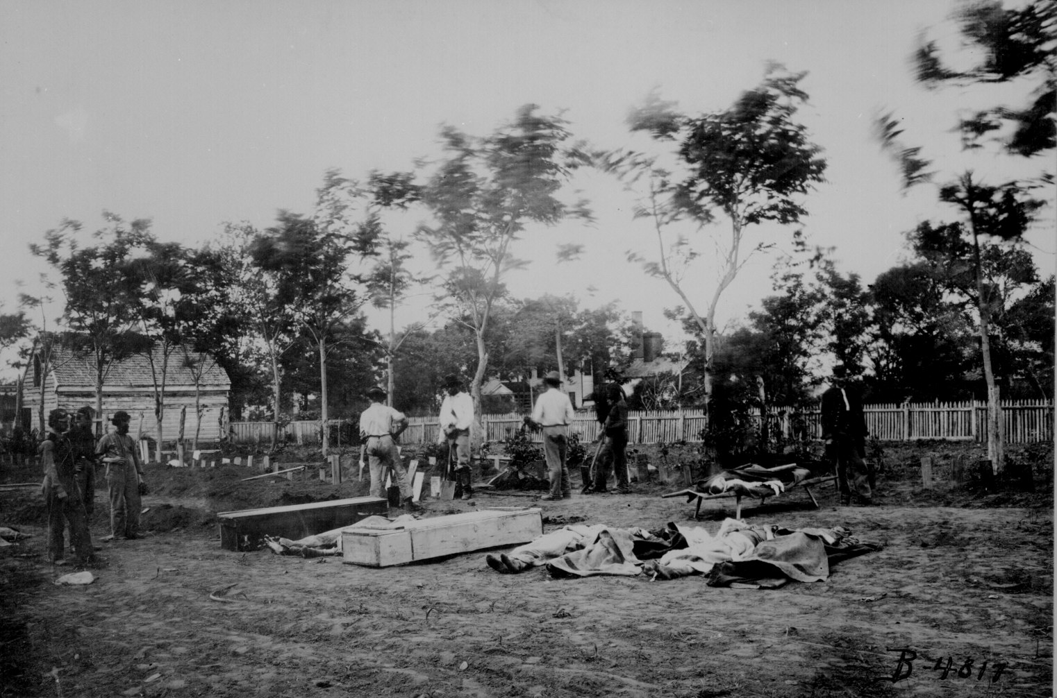 Burying the Dead at Fredericksburg, VA., after the Wilderness Campaign, May 1864 Photographed by Timothy H. O'Sullivan.